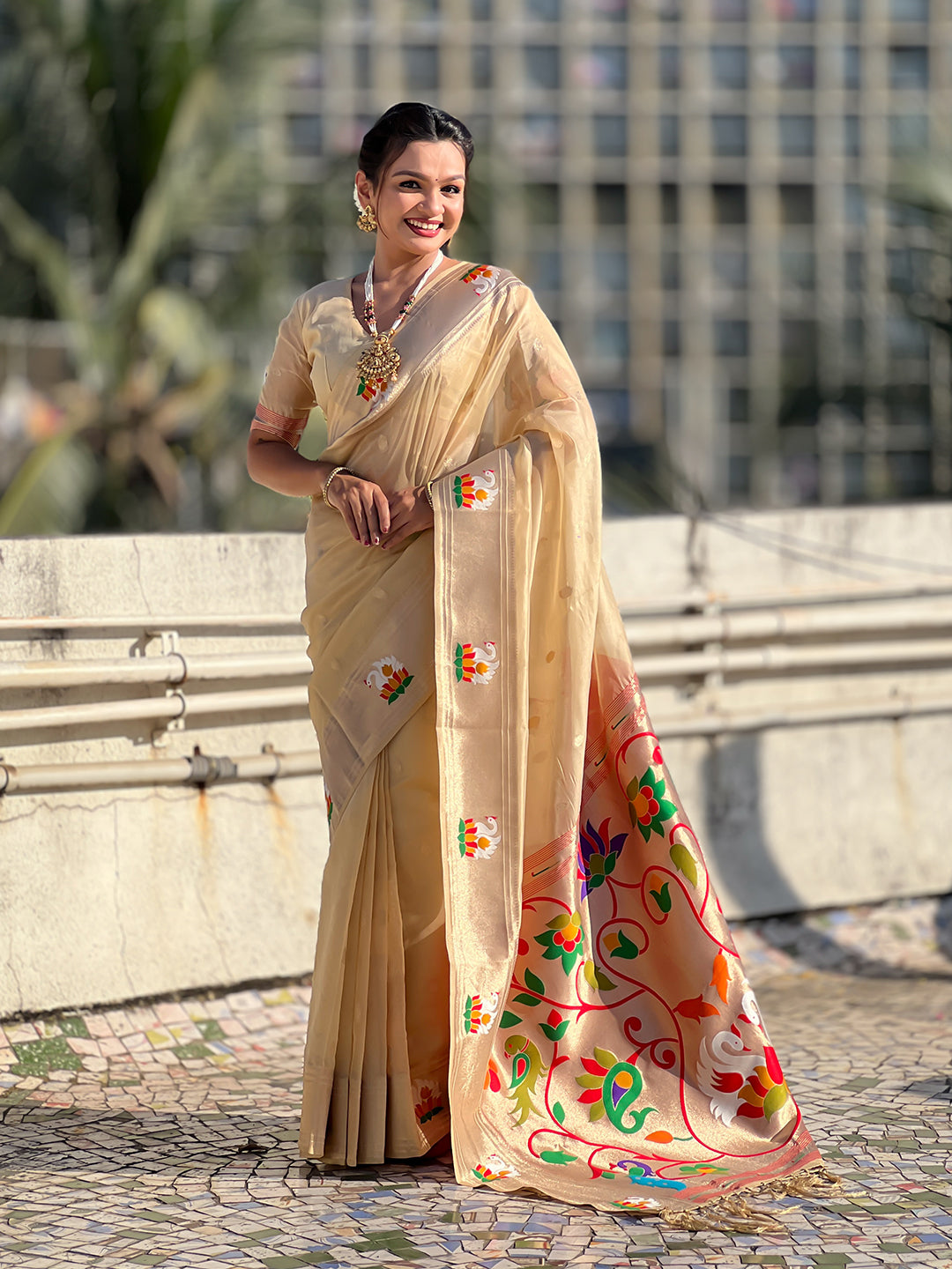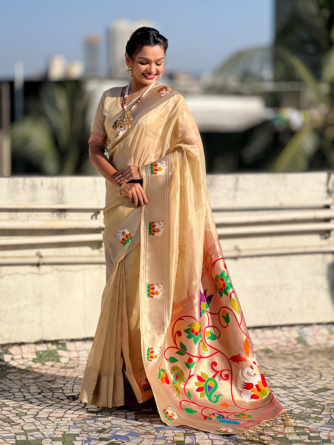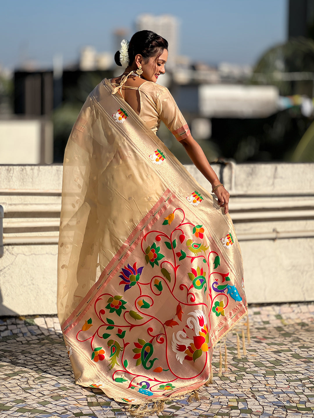 Chickoo Organza Swan Paithani Silk Zari Woven Saree