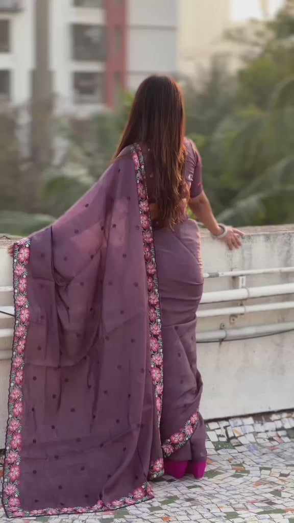 A versatile designer embroidered saree, suitable for celebrations, special events, and elegant day-to-evening wear.